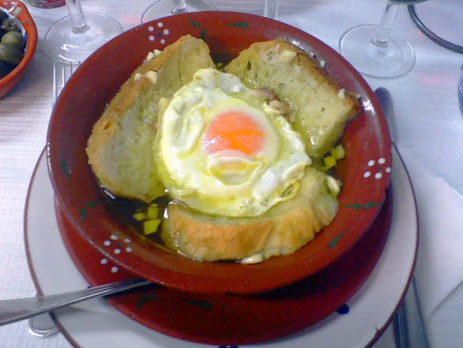 Em Trás-os-Montes, esta sopa, à base de um caldo de unto com pão de centeio, é tradicionalmente comida no inverno, ao pequeno-almoço, por agricultores e pastores antes de enfrentarem um dia de trabalho. É uma sopa saborosa, semelhante à açorda alentejana.