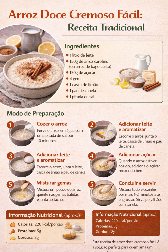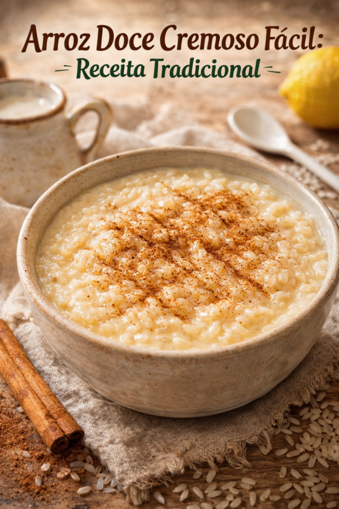 Arroz doce cremoso fácil, receita tradicional portuguesa com textura perfeita e sabor caseiro.