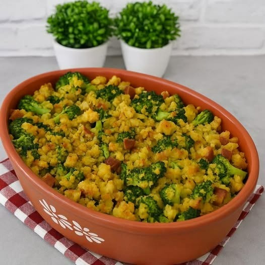 Dentro de uma tigela, esfarele a broa de milho, que deverá ter mais de um dia para estar duro, depois junta um pouco da água de cozer o bacalhau para humidificar o pão e mistura os brócolos cozidos, mas com cuidado para não os desfazer.