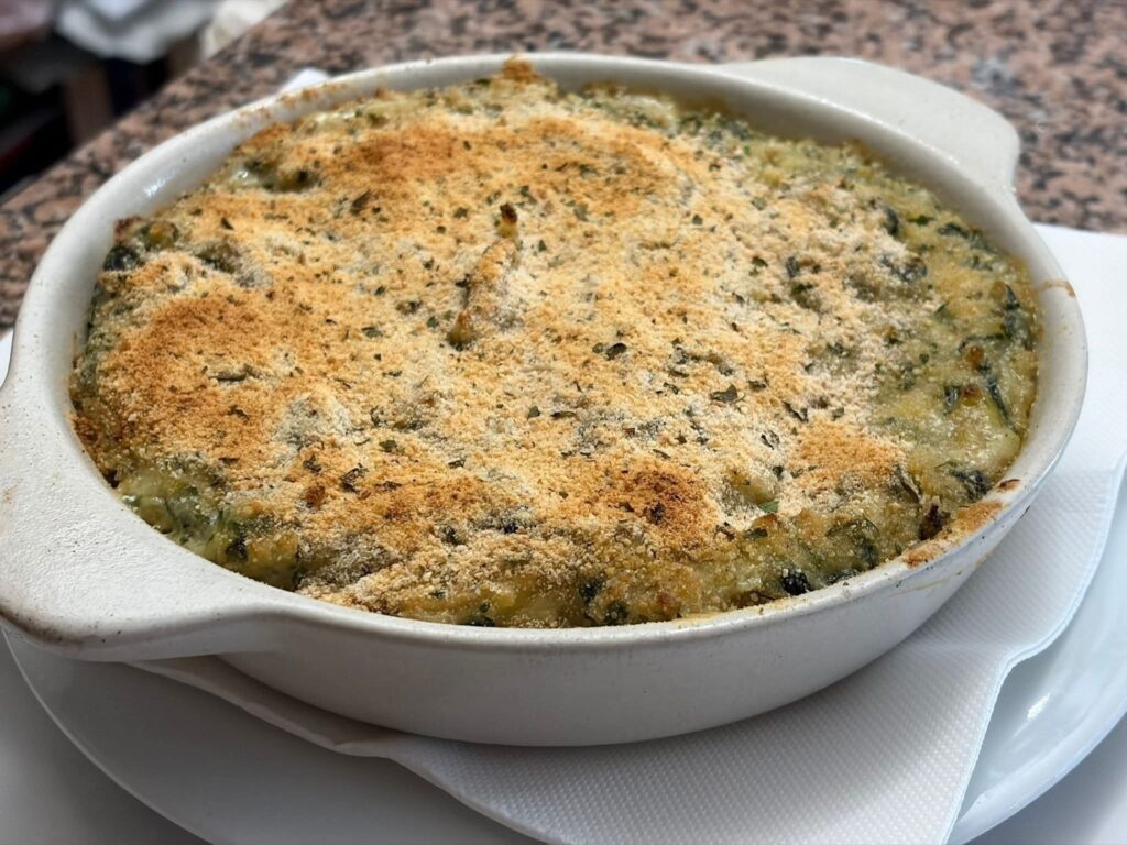 👉 Estes elementos são consistentes com versões tradicionais: bacalhau, espinafres, batata e béchamel são a base estrutural do prato ()