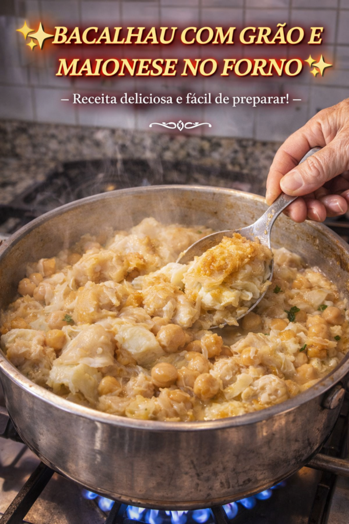 BACALHAU COM GRÃO E MAIONESE NO FORNO