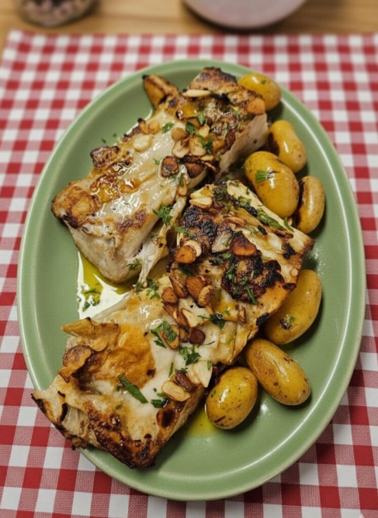 Bacalhau no Forno com Batatas Novas e Molho de Alho e Salsa