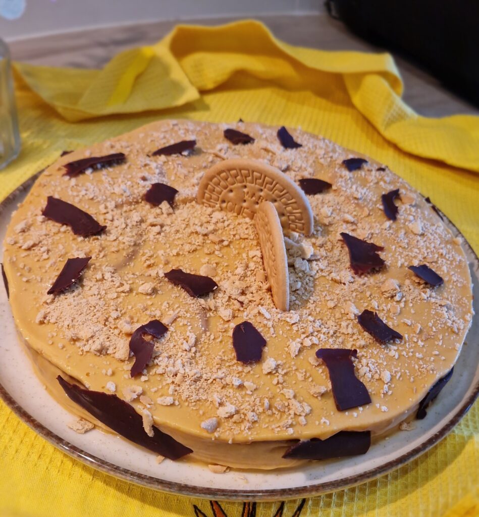 Polvilhe depois com as bolachas que sobraram, previamente trituradas, e com chocolate ralado. Leve ao frio até ficar bem firme. - No momento de servir, desenforme o bolo. Retire o chocolate derretido do congelador, descole-o do papel e parta-o em pedaços. Cole- os nas laterais do bolo e sirva🥰