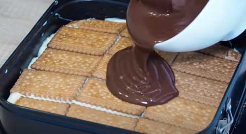 Bolo de Bolacha Tradicional com Creme Caseiro e Cobertura de Chocolate