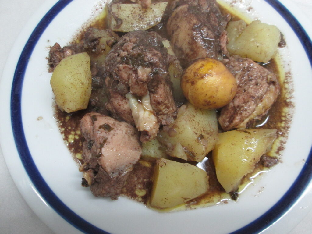 - 1 chávena de sangue da galinha (misturado com um pouco de vinagre para não coagular)
