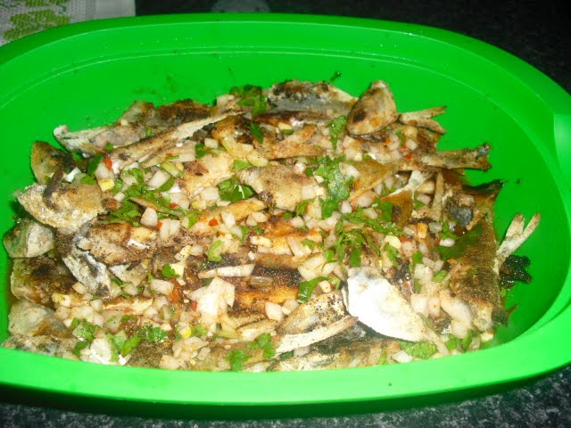 Frite os chicharros em óleo aquecido e vá colocando num pirex. De seguida coloque o molho por cima. Convem que este seja colocado com os chicharros quentes, pois absorvem melhor o sabor.