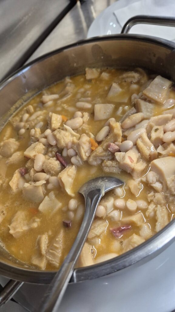 É receita de raízes, de avós que cozinhavam devagar, de panelas grandes ao lume e conversas longas à volta da mesa. A dobrada, tão macia que quase se rende ao garfo, e o feijão branco, que lhe dá corpo e conforto — juntos criam um dos pratos mais aconchegantes da nossa gastronomia.