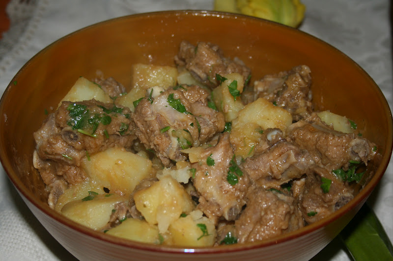 Este prato é divino, uma verdadeira iguaria. As batatas cozem ao vapor ao mesmo tempo que a carne cozinha no copo da Bimby, fica um prato bastante aromático. É um dos meus pratos de eleição.