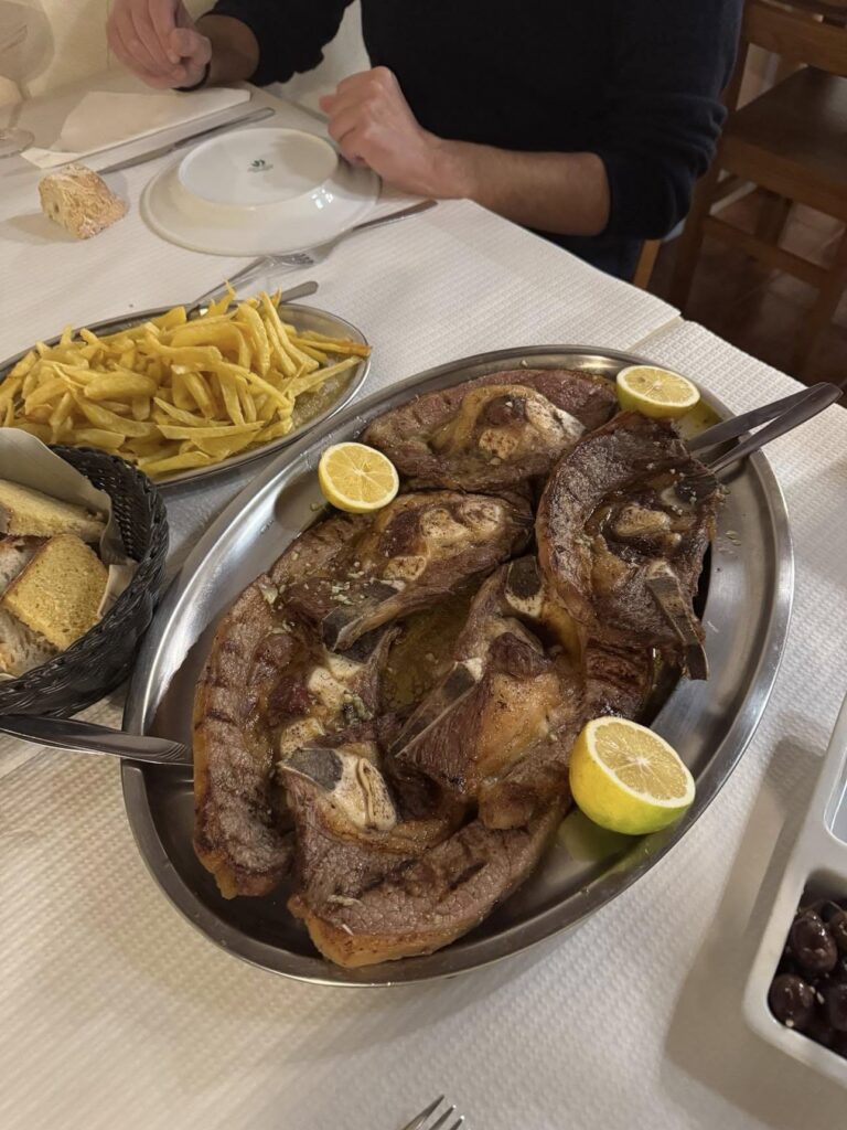 • Batatas fritas e pão alentejano para acompanhar