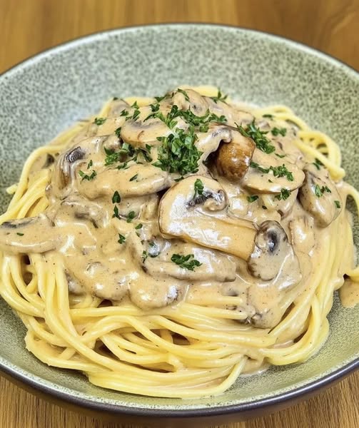 Esparguete com molho de cogumelos