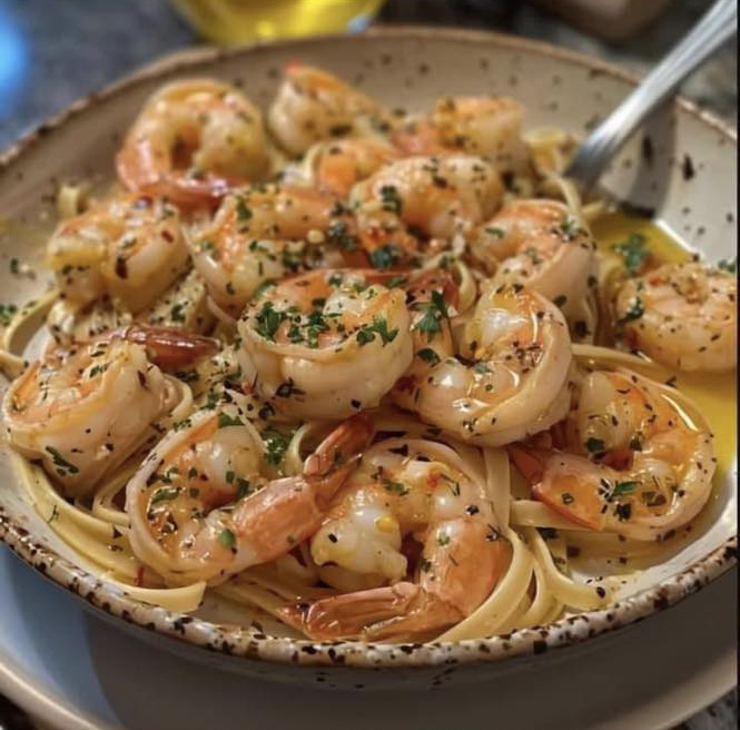Esparguete de alho com Camarão e Cogumelos