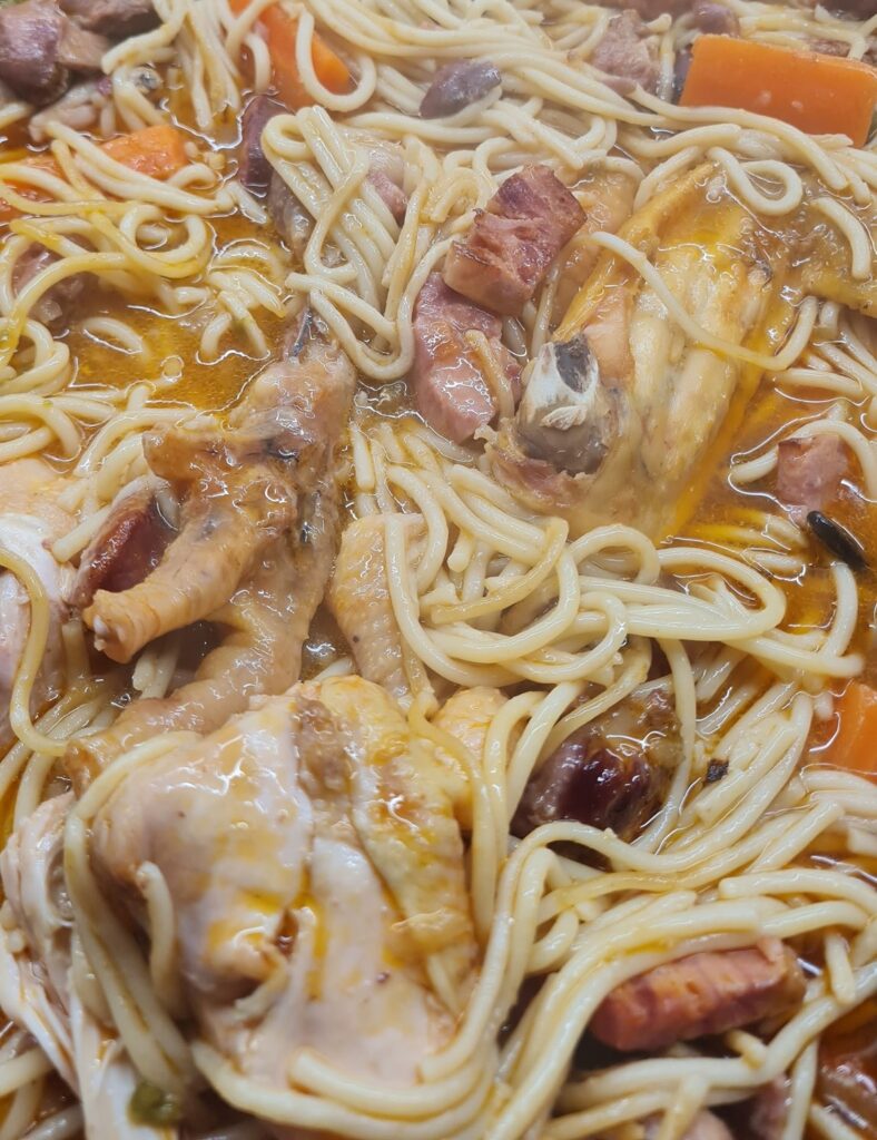 ✨ Frango Estufado com Esparguete (Chouriço e Cenoura) – Receita Familiar ✨