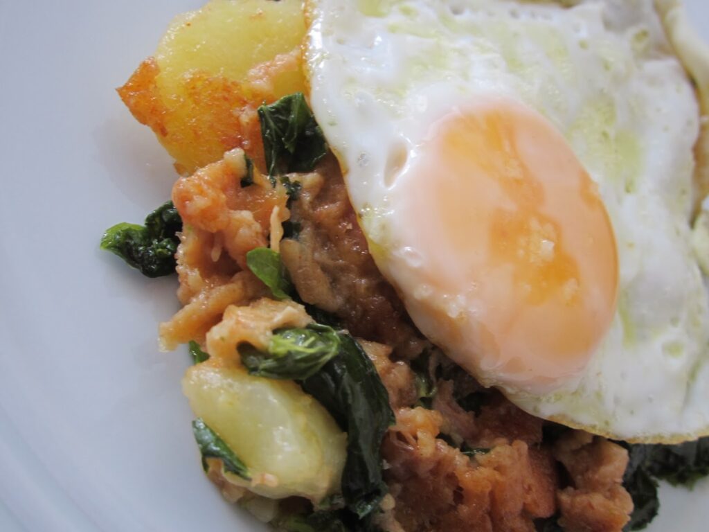 Migas de Batata, Grelos e Alheira