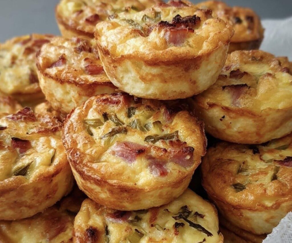 Mini quiches com alho francês e fiambre