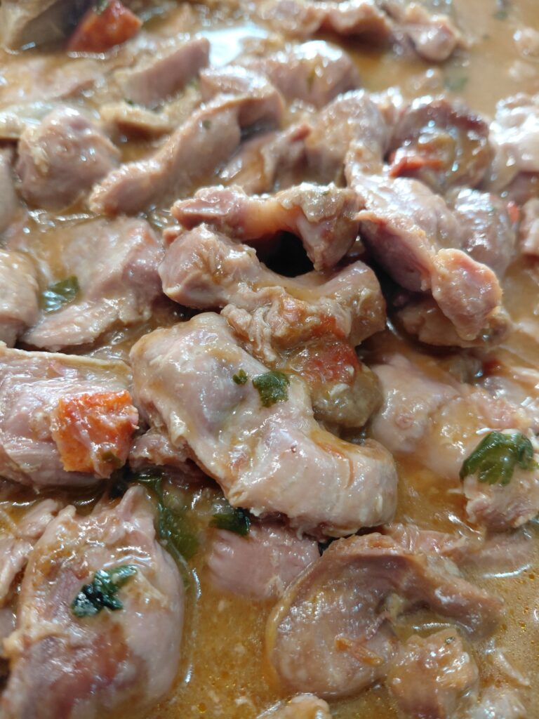 5️⃣ Finalizar: Quando as moelas estiverem tenras e o molho espesso, polvilhar com salsa fresca picada.