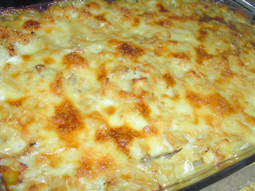 Por fim acrescentar o queijo ralado e levar ao forno a gratinar.
