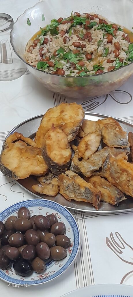 Sirve o peixe bem crocante, acompanhado do arroz fumegante e umas azeitonas boas. Se quiseres, rega o peixe com umas gotinhas de limão e prepara-te para a festa de sabores.