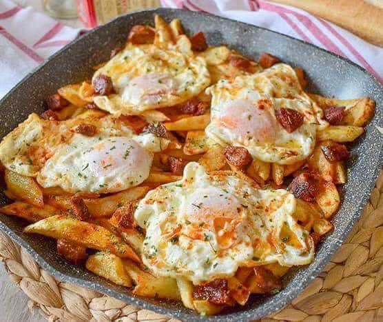 Ovos rotos com presunto e bacon
