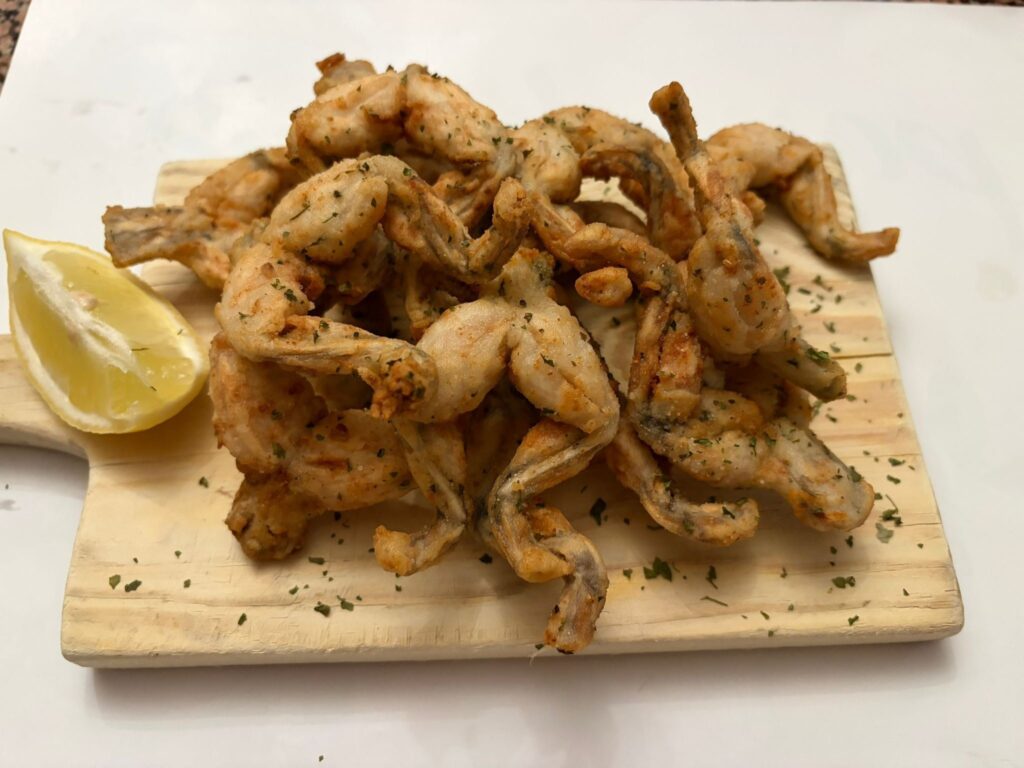 As pernas de rã fritas são uma iguaria delicada e pouco comum na gastronomia portuguesa, apreciadas pela sua textura tenra e sabor suave, semelhante ao frango. Fritas até ficarem douradas e crocantes, servidas com limão e ervas aromáticas, são uma excelente opção para quem procura uma experiência gastronómica diferente e sofisticada.