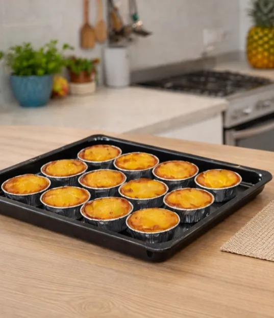 Preencher com o preparado de ananás e colocar as forminhas sobre o tabuleiro do forno. Levar ao forno – a 180ºC – por aproximadamente 25 minutos.