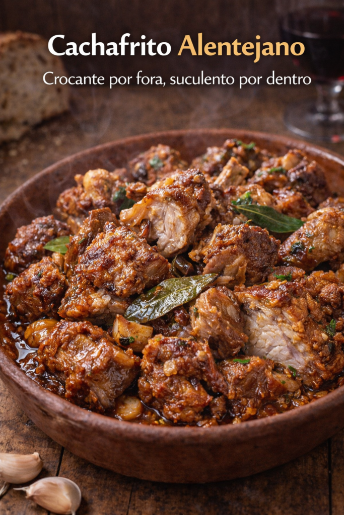 O cachafrito é uma receita típica do Alentejo, preparado com carne de borrego cortada em pedaços temperados em banha. Deve marinar 8 a 12 horas antes de fritar.